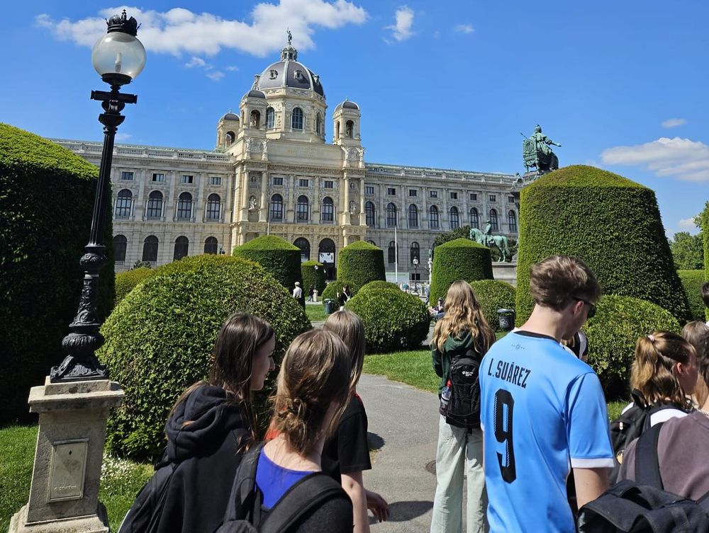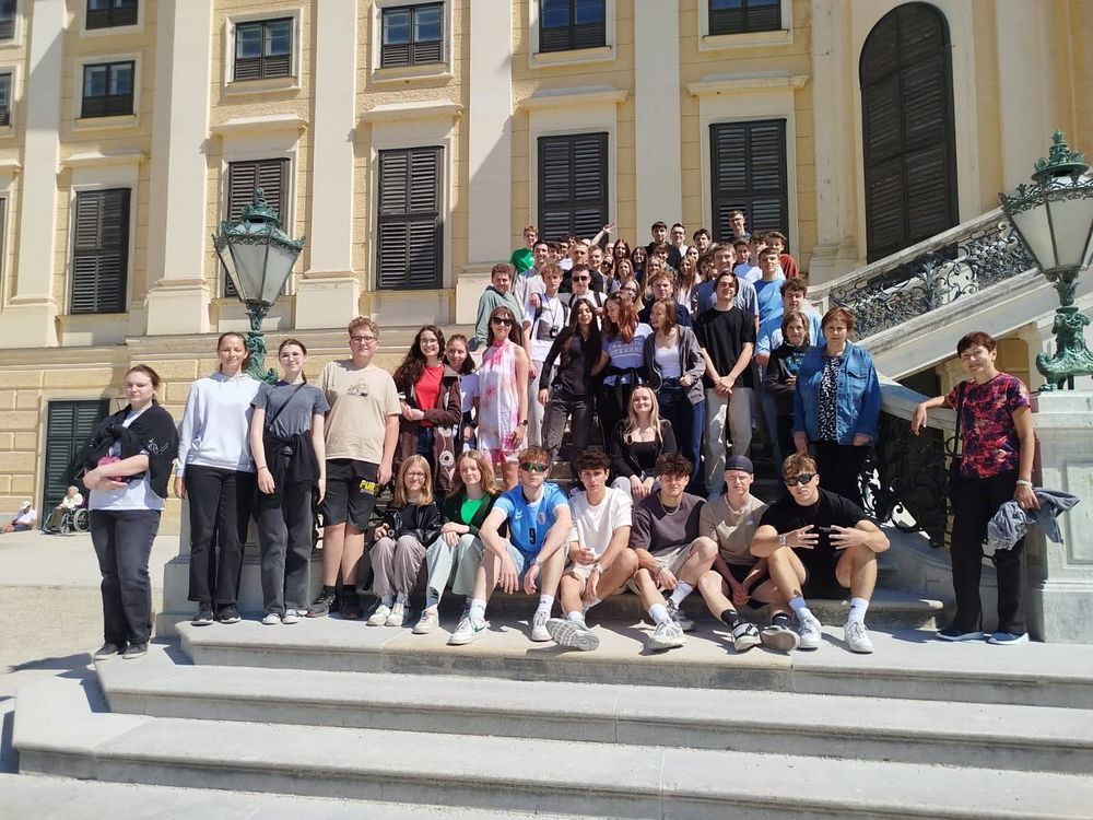 Dne 13. 5 . 2025 navštívilo v rámci výuky německého jazyka 53 studentů hlavní město Rakouska – Vídeň. Program byl nabitý: nejprve měli všichni možnost prohlédnout si nádherné interiéry i exteriéry zámku Schönbrunn, druhým bodem programu byla návštěva akvária Dům moře. To je umístěno v bývalé věži protiletecké obrany a zaujme návštěvníky nejen živočichy v akváriích či na souši, ale také svým prostorovým uspořádáním a terasou v posledním patře, ze které je krásný pohled na město. Odpoledne se studenti přesunuli do centra města, kde se prošli areálem Hofburgu, navštívili Stephansdom a poznali také část známého bulváru Ringstrasse. Počasí výletníkům celou dobu přálo, takže si všichni z Vídně odvezli jen ty nejlepší dojmy a vzpomínky.