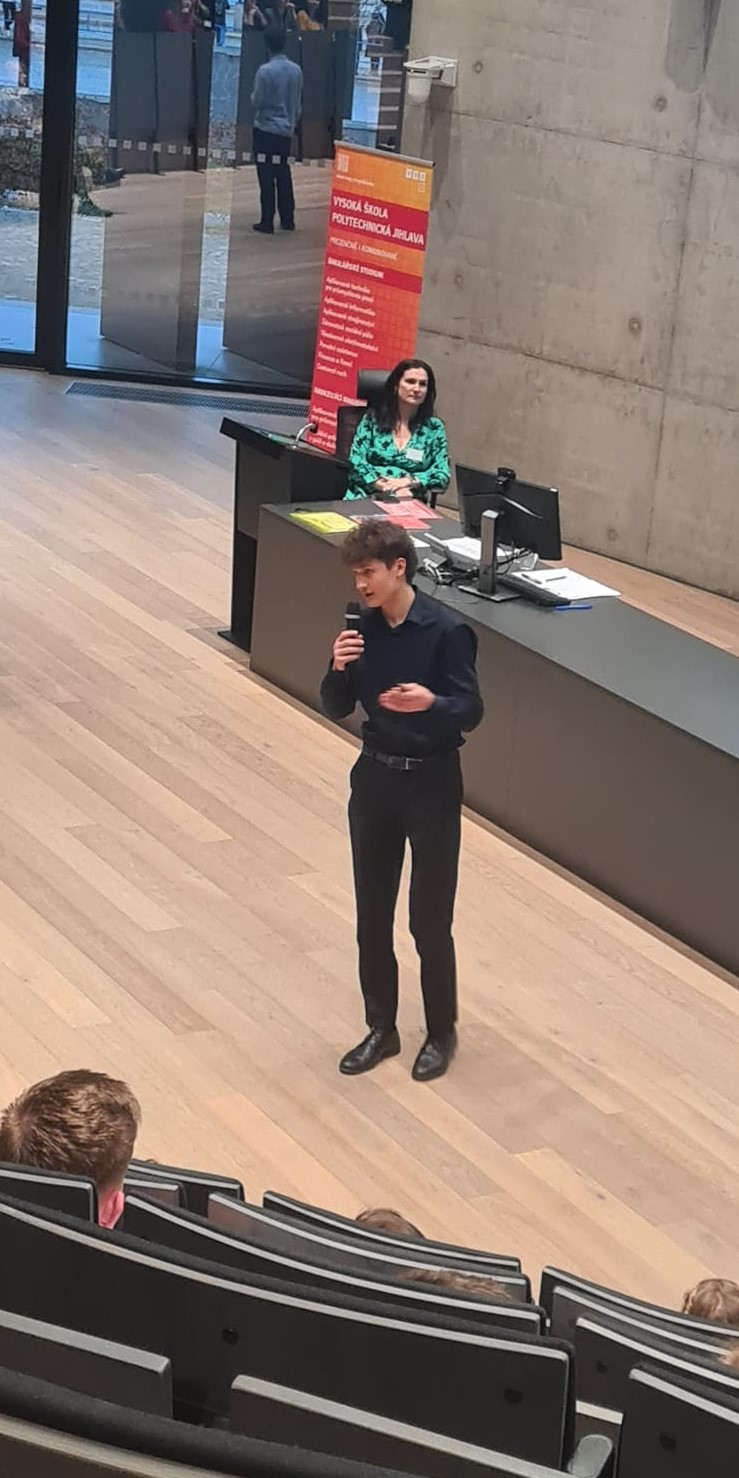 V úterý 26.11. nás skupina sedmi statečných reprezentovala na prestižním inovačním kempu Re-power your future, pořádaném organizací Junior Achievement Czech na VŠ polytechnické v Jihlavě. Natálie Schreiberová, Alena Kuncová, Marek Morava, Jakub Pavlas, Mikuláš Bernard, Julie Slabá a Kateřina Susedíková si tak v týmech s vrstevníky z dalších škol vyzkoušeli řešit reálné výzvy Kraje Vysočina. Na zpracování svého projektu pod vedením školených mentorů z praxe měli soutěžící několik hodin a na prezentaci s cílem přesvědčit odbornou porotu pouhé čtyři minuty. Všichni si vedli naprosto skvěle a jejich nápady by mohly směle konkurovat profesionálům. Vezeme dvě první místa za nejlepší podnikatelský záměr a prezentaci na pódiu.