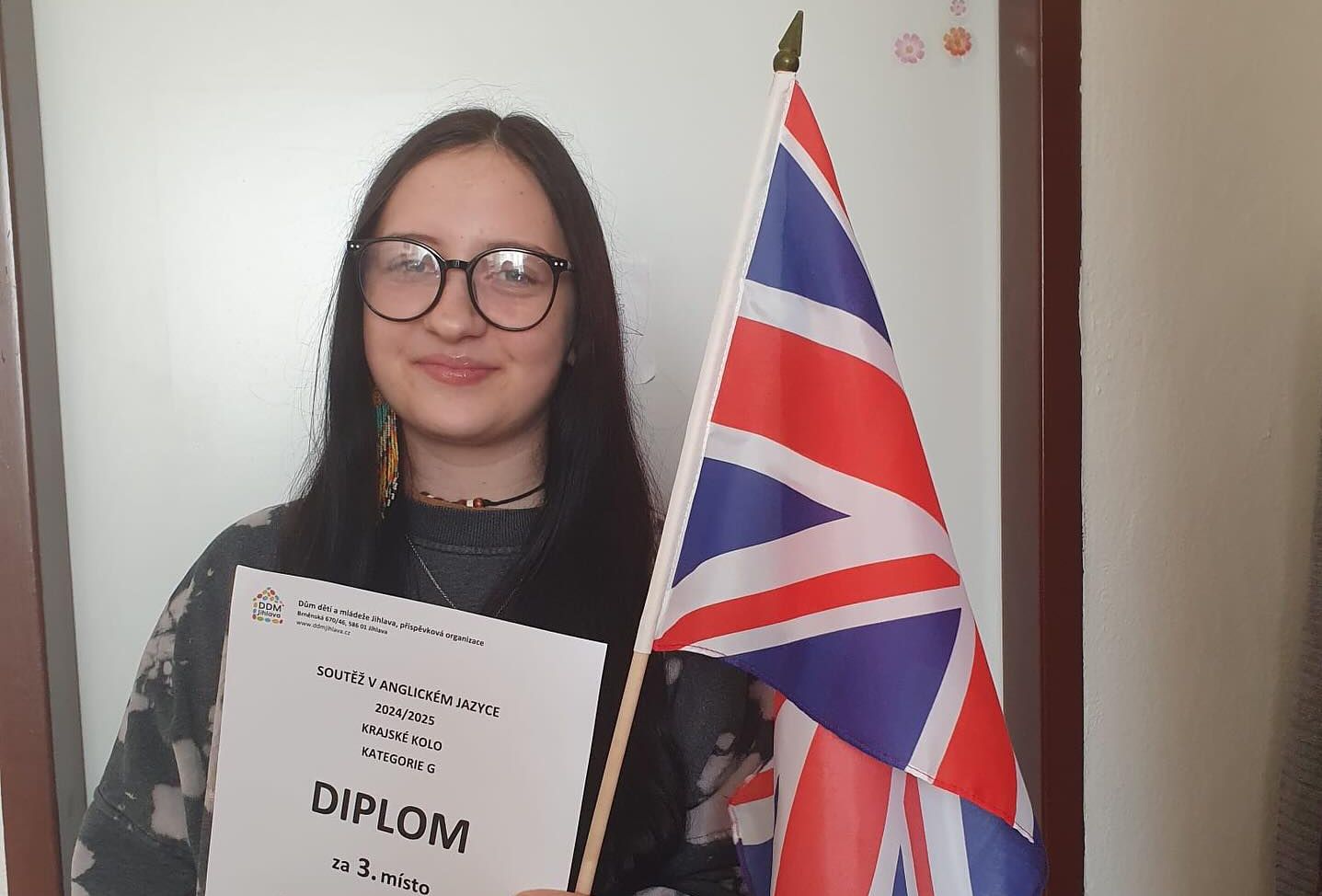 V pondělí 24. 3. 2025 proběhlo krajské kolo konverzační soutěže z angličtiny. Simona Slaninová (3.A) zde získala skvělé třetí místo. Blahopřejeme a děkujeme za reprezentaci školy. Well done :-)