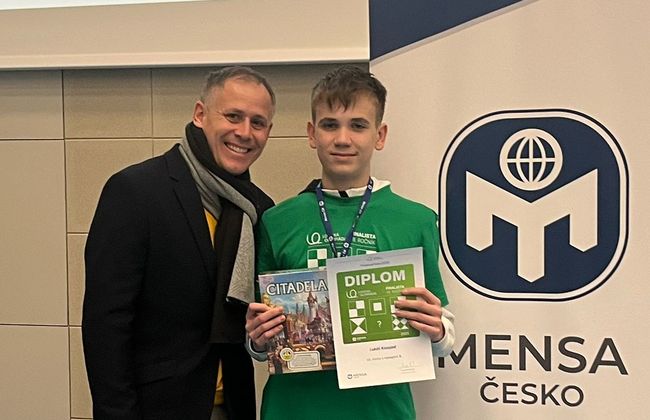 V celostátním kole Logické olympiády se blýskl student kvarty Lukáš Kozojed. Z Prahy přivezl krásné 10. místo, což je vynikající výsledek v těžké konkurenci, ale také historicky druhý nejlepší pro našeho kvartána. Lukáš patří dlouhodobě mezi špičku v kraji jak v logické olympiádě, tak v soutěži Pangea. V pondělí to opět potvrdil. Blahopřejeme a děkujeme za skvělou reprezentaci školy.