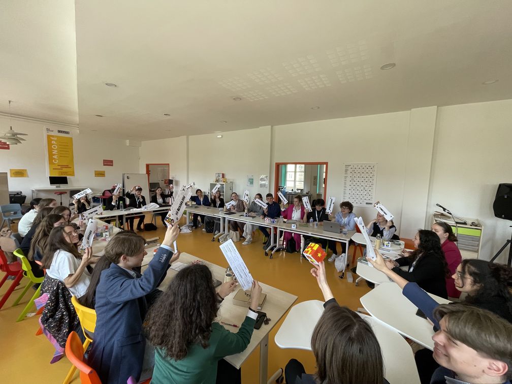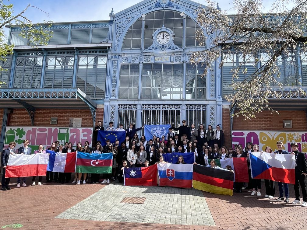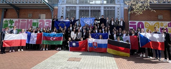Čtveřice studentů našeho gymnázia – Kristýna Dománková 3.A, Dita Vinczeová 1.A, Šimon Festa 7.O a Jakub Pavlas 5.O – patřila mezi 75 mezinárodních účastníků modelového zasedání OSN, které pořádalo Lycée Charles de Gaulle v Chaumont. Shromáždění probíhalo ve dvou komisích, francouzské a anglické. Simulace zasedání byla realizována do všech detailů, včetně přísného protokolu, který musely všechny delegace dodržovat. V případě jeho porušení přicházelo varování či trest.