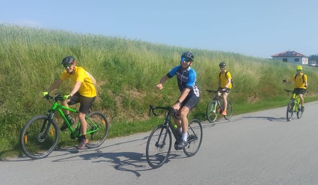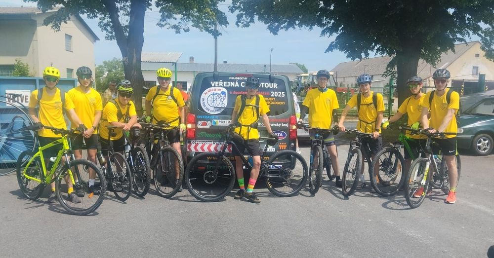 Sedm statečných cyklistů z našeho gymnázia s doprovodem se zúčastnilo charitativní sportovní veřejné akce na podporu onkologicky nemocných dětí. Ujeli celkem 82 km, aby se mohli přidat k pelotonu v 6. etapě akce "Na kole dětem" s J. Zimovčákem z Nové Cerekve do Pacova. Našim studentům na oplátku vedení podniku umožnilo jízdu v pelotonu hned za vysokým kolem p. Zimovčáka a společnou fotografii s osobnostmi této sportovní akce (s prof. MUDr. Janem Pirkem, Josefem Zimovčákem). Děkuji všem studentům za podporu této akce a že se ve zdraví vrátili.