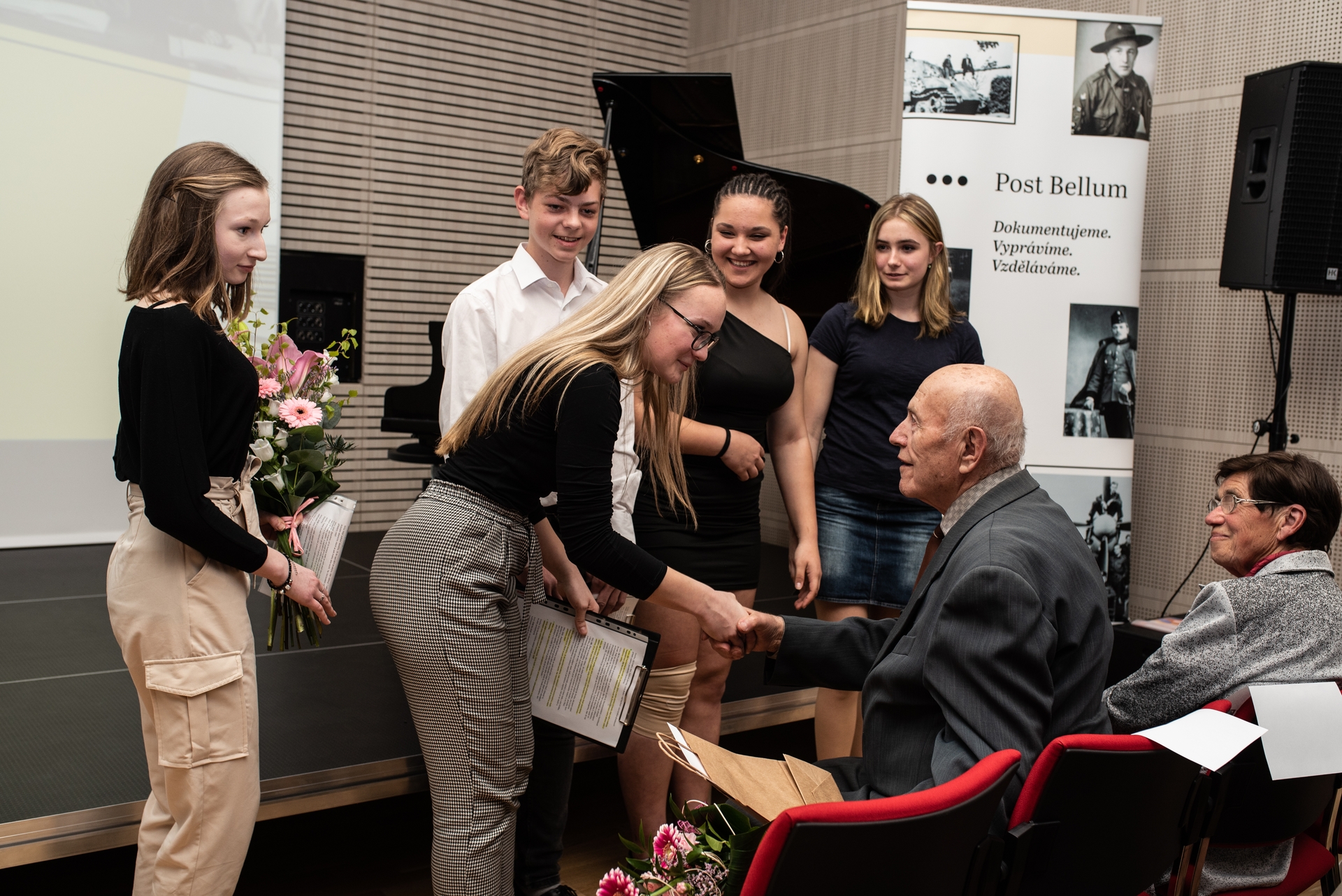 Ve čtvrtek 28. dubna 2022 proběhly v Humpolci závěrečné prezentace žáků zapojených do projektu Příběhy našich sousedů ve spolupráci s organizací Post Bellum. Naši školu reprezentovali Vojtěch Kalina, Michaela Balounová, Anežka Moravcová, Aneta Němcová a Nikola Koubová. I když kvůli překážkám v podobě covidových nařízení byl tento ročník nesoutěžní, studenti našeho gymnázia získali jen samé pozitivní zpětné vazby po rozboru své práce s odbornou porotou. To je zcela ta největší satisfakce za jejich úsilí a nasazení, jakým se projektu zhostili. Studentům gratuluji a děkuji za skvělou reprezentaci naší školy.