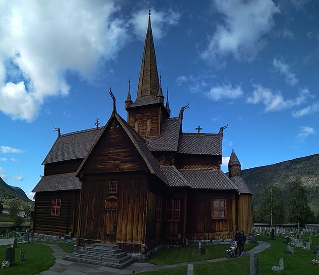 Pondělí naše výprava věnovala malebnému městečku Lom. Městečkem protéká nádherná ledovcová řeka. Nicméně, hlavní turistickou atrakcí Lomu je dřevěný kostelík ze 12. století, jenž nám svým poutavým výkladem přiblížila místní průvodkyně. Snad i na fotografiích vynikne neobvyklá směs křesťanské kultury na dávné vikingské mytologie.