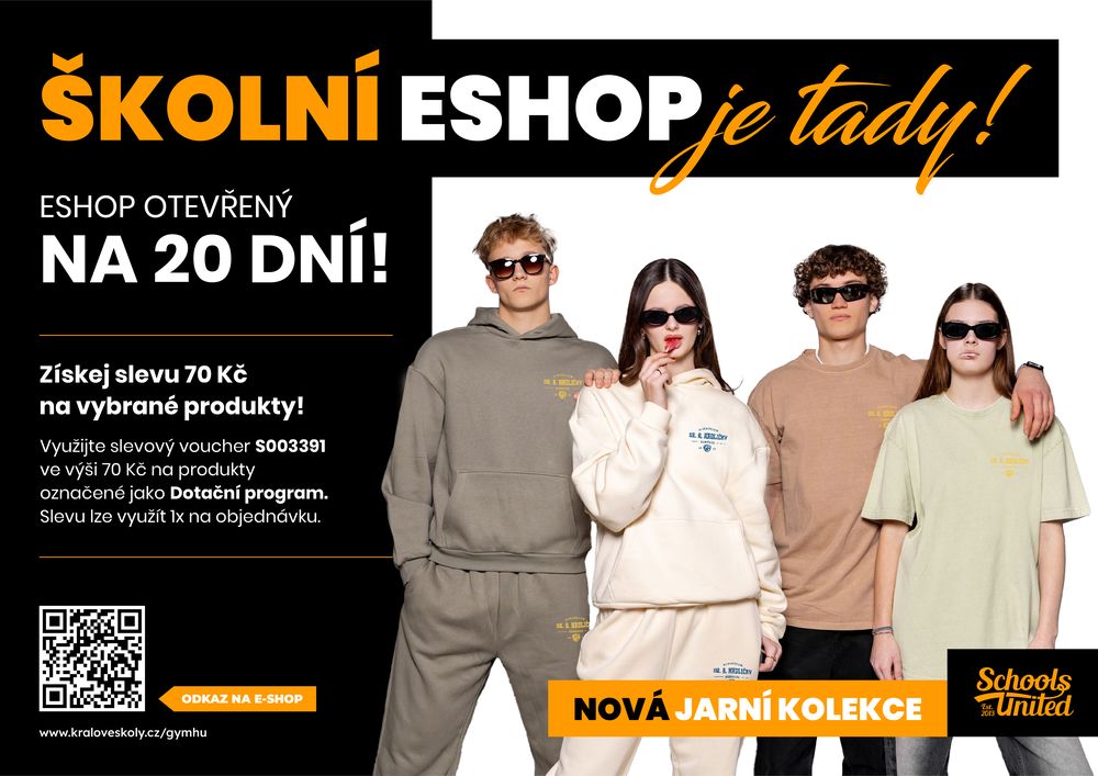 Nechali jsme si jako škola vytvořit vlastní volnočasovou školní kolekci oblečení od School United, jejíž náhled vidíte níže a kterou je možné si aktuálně pořídit na našem e-shopu zde: https://www.kraloveskoly.cz/gymhu/
