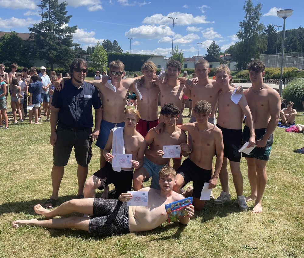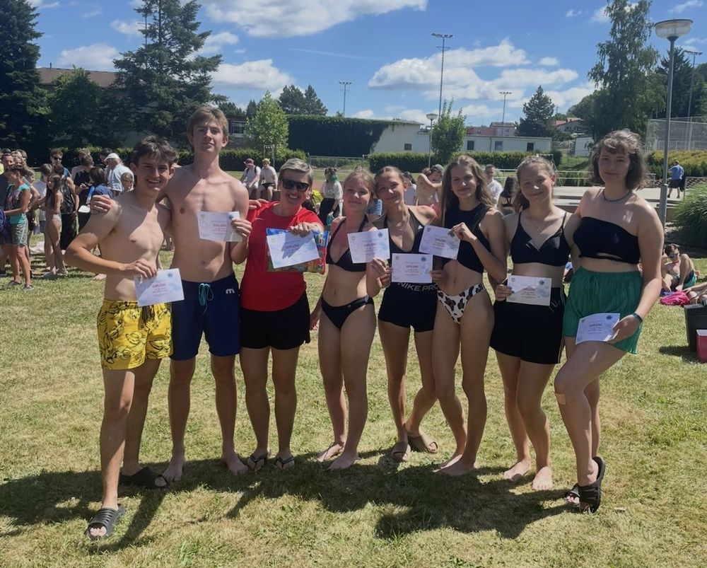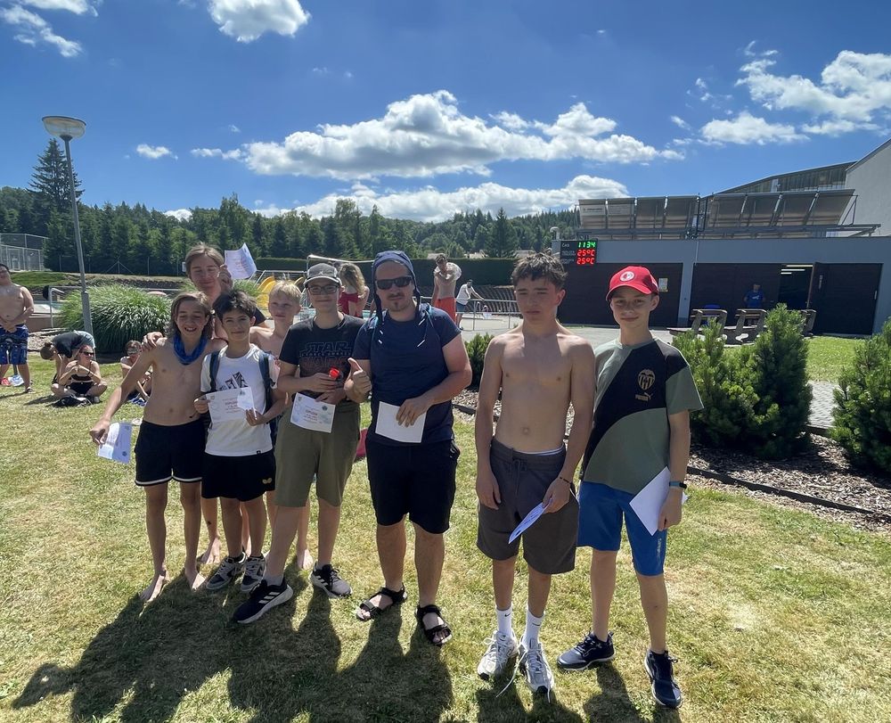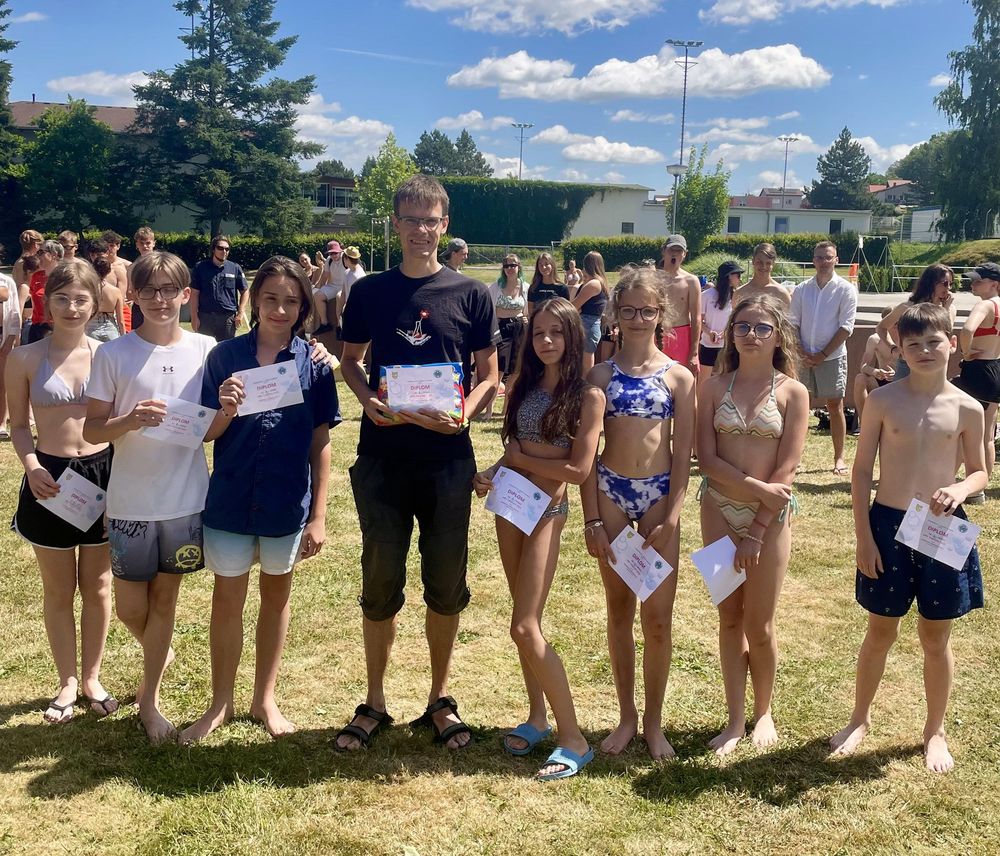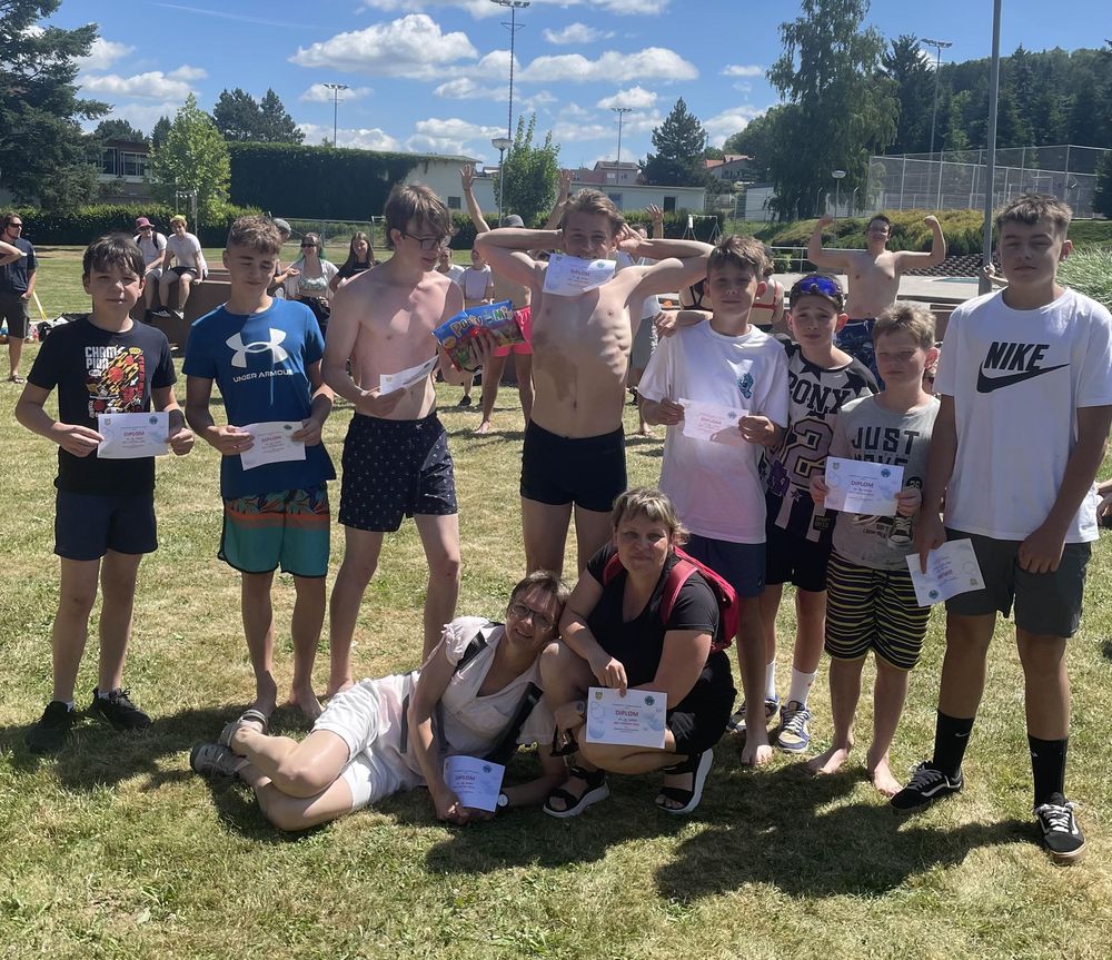Dne 25. 6. 2025 jsme zorganizovali soutěžní den na koupališti Žabák. Na přípravě soutěží se podíleli studenti tříd 7.O a 3.A. Soutěžící měli možnost si užít disciplíny jako např. Lochneska, Nastěnka, Hadí tanec, Vodní puzzle, Tobogán, Létající houby…