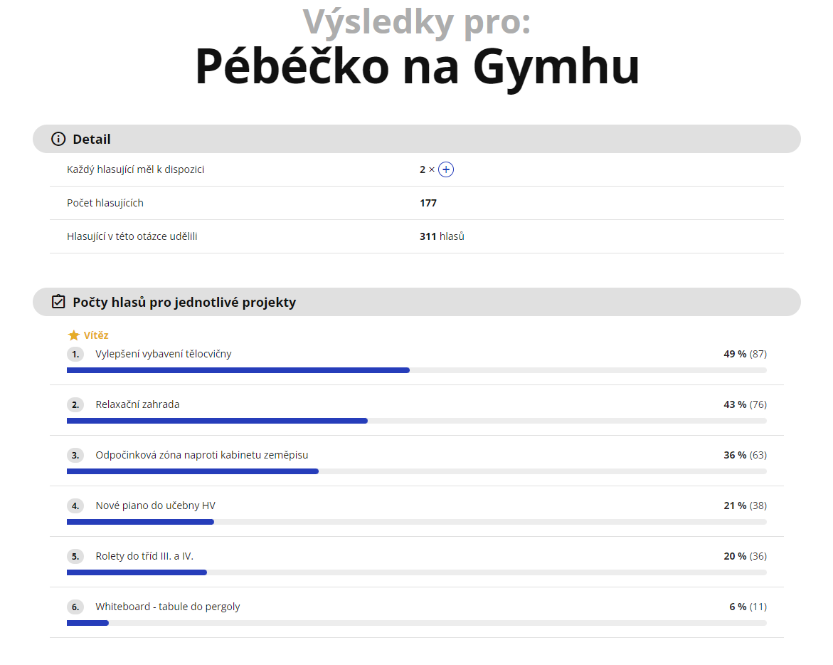 Děkujem všem navrhovatelům a hlasujícím. Kompletní výsledky hlasování a další informace najdete na https://application.decision21.com/gymnazium-dr-a-hrdlicky-humpolec-vysocina-2022-3